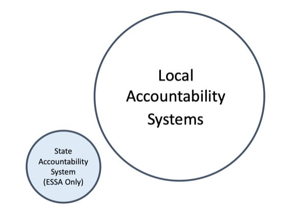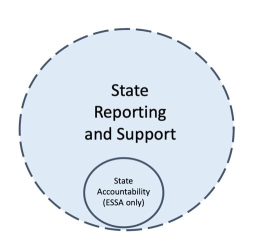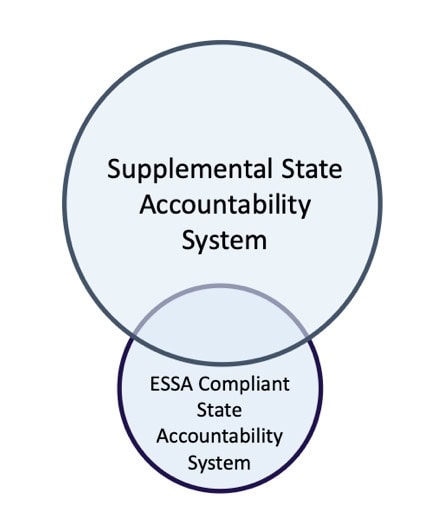 Another point of view is that ESSA requirements are only partially in-line with state priorities. Accordingly, the state may wish to diminish some aspects of federal requirements but more fully incorporate others into a supplemental state system. By doing so, the ESSA requirements become a subset of a broader and potentially more flexible system, since the supplemental system is unconstrained by federal requirements.
